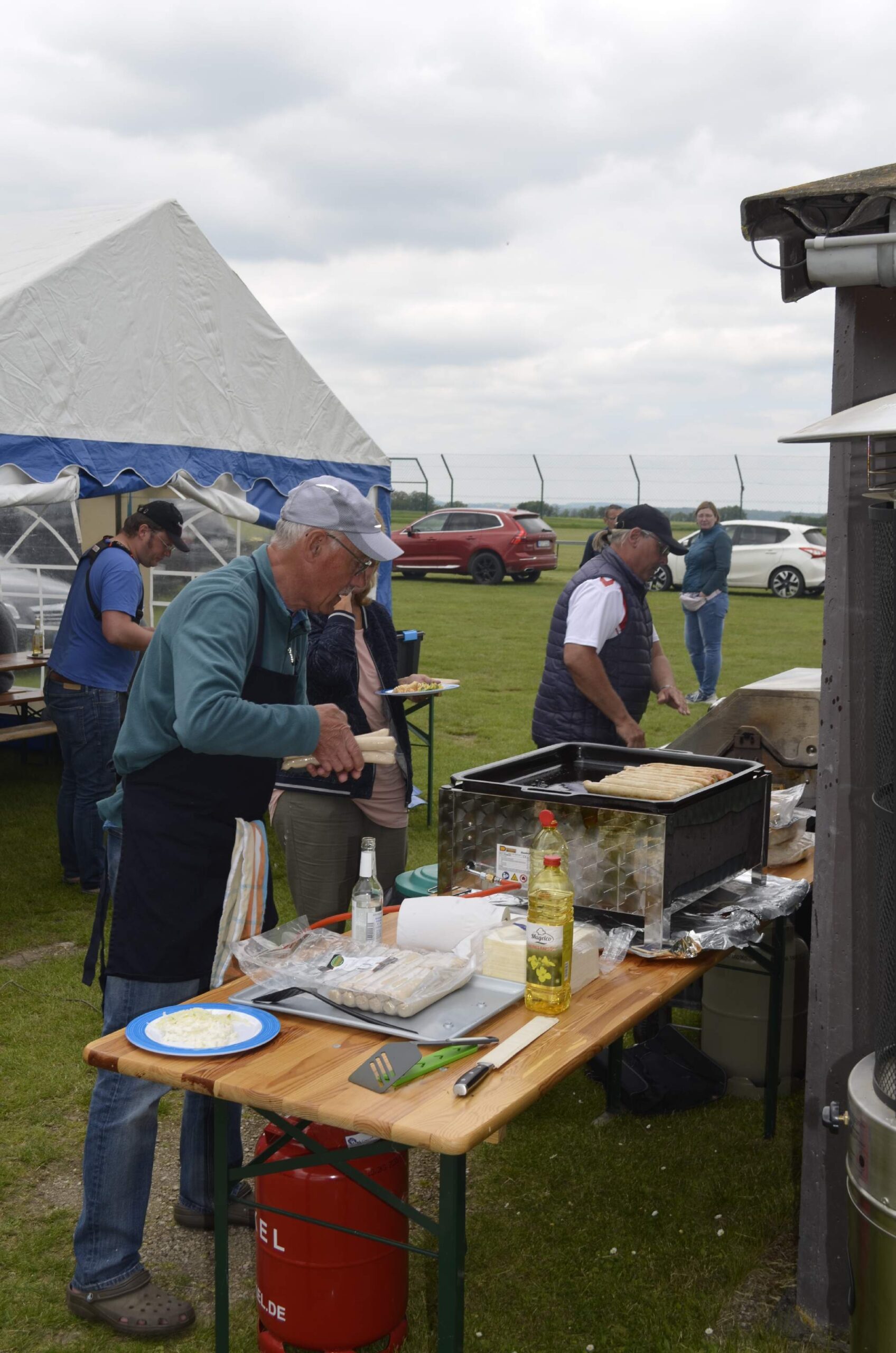 Am letzten Wochenende (18.05. bis 21.05.2023) hatten wir reichlich Besuch auf unserem Fluggelände. Es kamen ca. 25 Modellpiloten aus Deutschland zu uns, um dem F-Schlepp-Modellflug zu fröhnen. Alle Tage wurden von bestem Wetter begleitet und so wurde reichlich geflogen. Donnerstag und Freitag wurden außer den Segelgespannen auch Jet und Hubschrauber geflogen. Die anwesenden Gäste und Mitglieder von unserem Verein waren von diesen Einlagen begeistert und beklatschten die Darbietungen mit großem Applaus. Freitag Abend gab es für alle Anwesenden Reibekuchen, die unser Johann zum wiederholten Male mit Hilfe von Lukas hervorragend gebacken hatte. Am Samstag wurde ausnahmslos geschleppt. Es waren auch einige Vereinsmitglieder unter den Piloten. Mittags und Abends wurde gegrillt und das ein- oder andere Fässchen Gaffel-Kölsch angeschlagen. Der Abend klang dann gemütlich am Lagerfeuer bei Kölsch uns selbstgemachten Limoncelli in lustiger Stimmung aus. Unsere Gäste waren sehr begeistert von unserem Verein, unserem Gelände und unserer Gastfreundschaft, und hoffen natürlich im nächsten Jahr auf eine Wiederholung des Wochenendes. Für den Verein ist durch die Tagesmitgliedschaften und Campinggebühren ein dickes plus in die Kasse gespült worden, was sehr erfreulich ist.